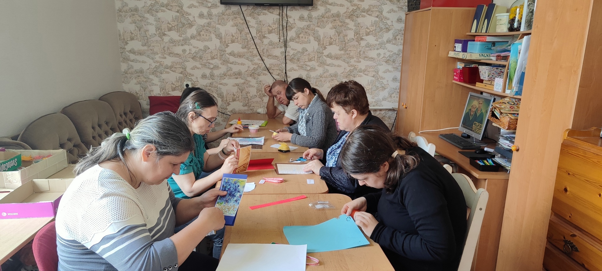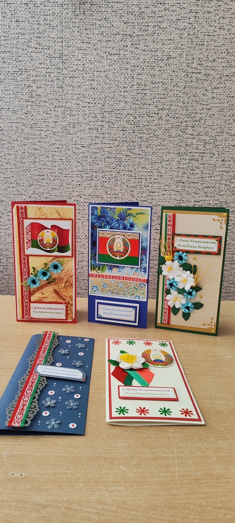 Подопечные отделения социальной реабилитации, абилитации инвалидов Ивановского территориального центра с целью сохранения традиций и истории нашего государства, способствующих формированию гражданской позиции, чувства патриотизма и уважения к государственным символам, изготовили на кружке «Кардмейкинг» поздравительные открытки «С Днем Независимости Республики Беларусь!»