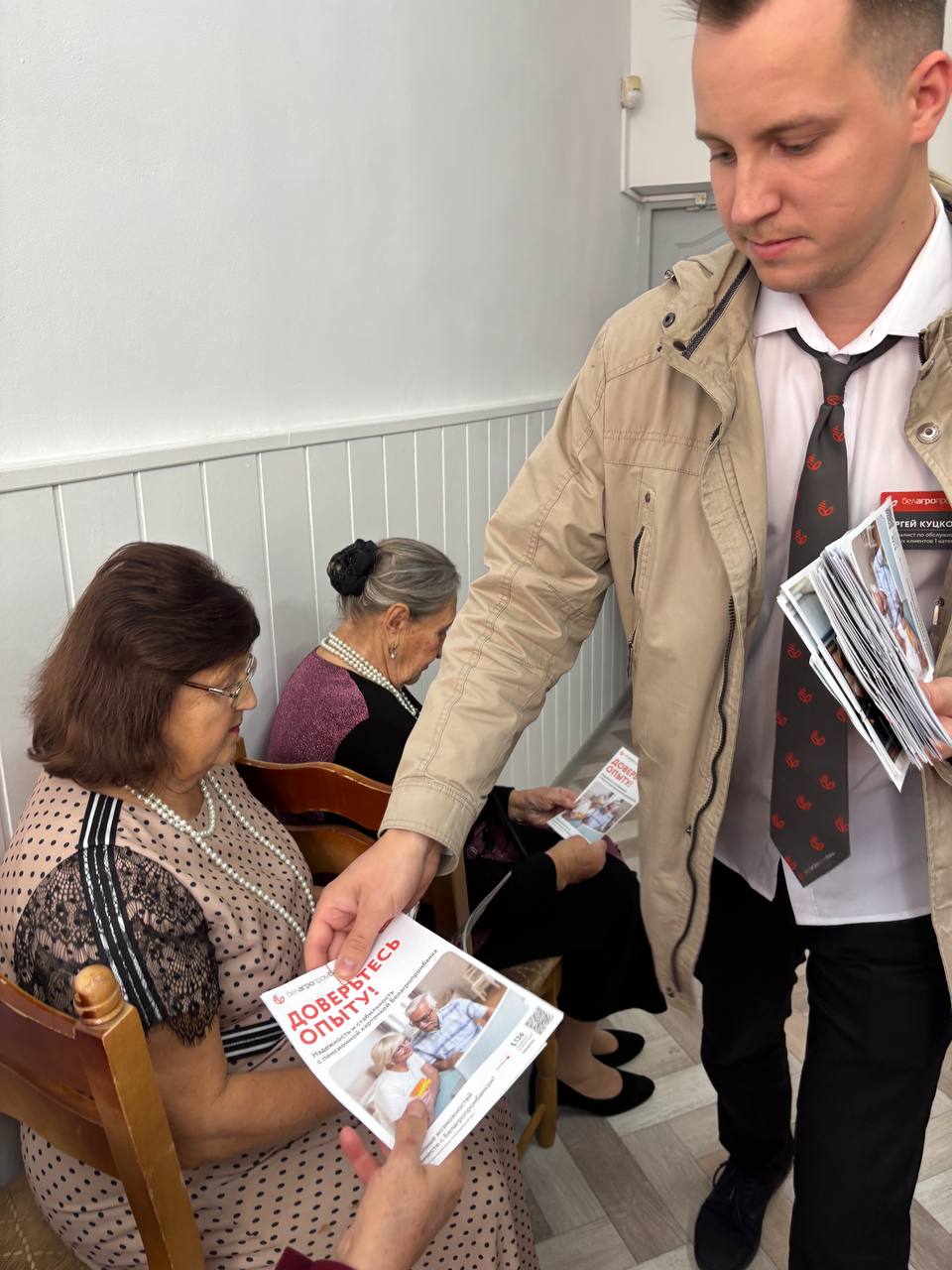 В рамках реализации проекта «Академия Заботы», специалистами Ивановского территориального центра совместно с сотрудниками ОАО «Белагропромбанк» проведена совместная информационно-просветительская беседа с пожилыми гражданами «Повышение финансовой грамотности и безопасности в использовании цифровых банковских сервисов». Сотрудниками банка даны разъяснения как принимать взвешенных решений при использовании финансовых продуктов в интернете и основные финансовые риски при этом, а также выданы тематические информационно-просветительские буклеты и листовки.