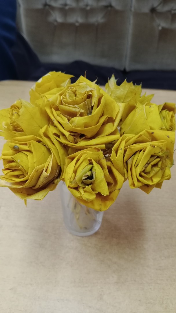 Подопечные отделения социальной реабилитации, абилитации инвалидов Ивановского территориального центра на групповом занятии познакомились с новой техникой изготовления подделок из осенних листьев – объемное конструирование. В результате коллективного труда ребят получился букет роз из кленовых листьев, который стал украшением интерьера обеденного стола отделения.