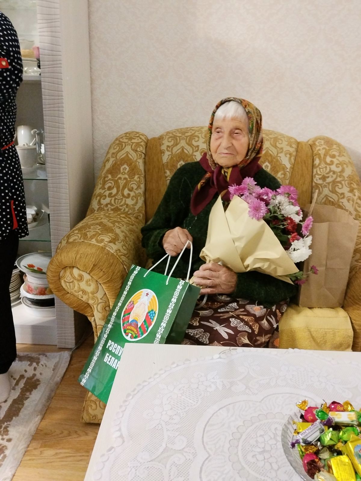 В середине ноября свой 101 год рождения отметила Анна Григорьевна Дашкевич, жительница дер. Стромец Ивановского района. Свою особенную дату Анна Григорьевна отметила в кругу своей семьи, а семья у Анны Григорьевны большая: 10 детей, 20 внуков, 39 правнуков, 4 праправнука. В этот важный день поздравить ее приехали директор ГУ «Ивановский ТЦСОН» В.О Головчук, заведующий отделением ППАИиП Дзержинская Т.К. и председатель Одрижинского сельисполкома Климук В.Н. От всех собравшихся в адрес именинницы прозвучало множество поздравлений с пожеланием крепкого здоровья, большого уважения и благополучия, а также Анне Григорьевне вручены цветы и подарки.