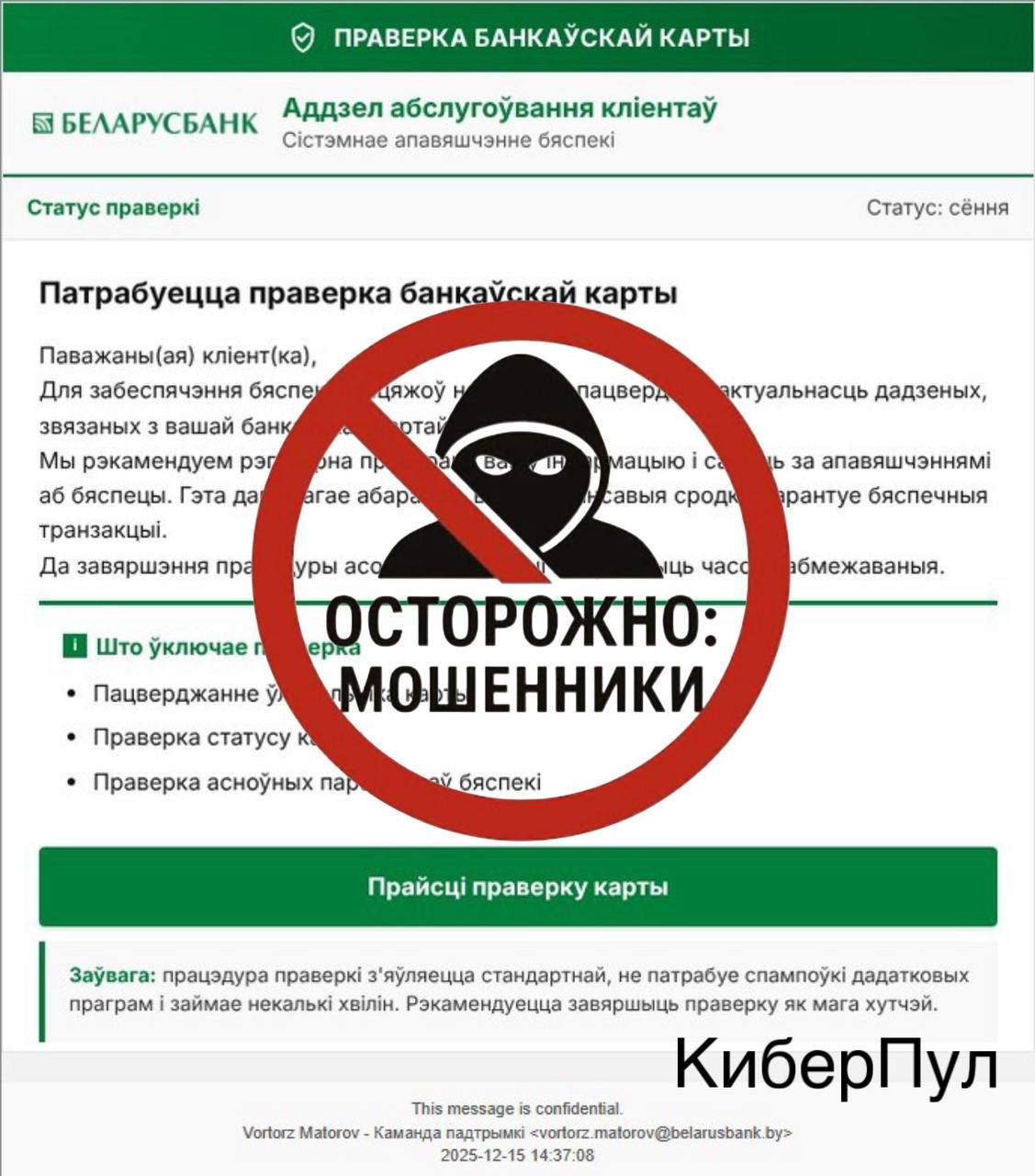 📨Новая волна фишинга от имени Беларусбанка накрывает электронные почты белорусов.