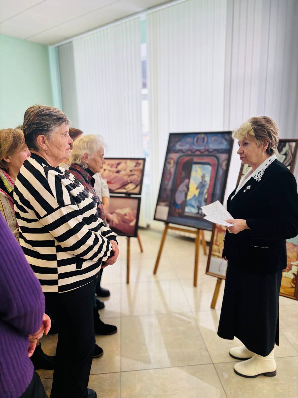 В рамках клуба общения «Перемена» для граждан «серебряного» возраста Ивановского территориального центра была организована экскурсия на выставку репродукций картин Николая Константиновича Рериха «Маяки света». О жизни и творчестве художника, формировании его мировоззрения и источниках вдохновения участникам экскурсии рассказала старший научный сотрудник ГУК «Районный музейный комплекс имени Наполеона Орды» Лариса Георгиевна Дричиц. Она также поведала о том, что каждое полотно автора наполнено не только историей и мифологией, но и глубокой духовностью, красотой и гармонией.