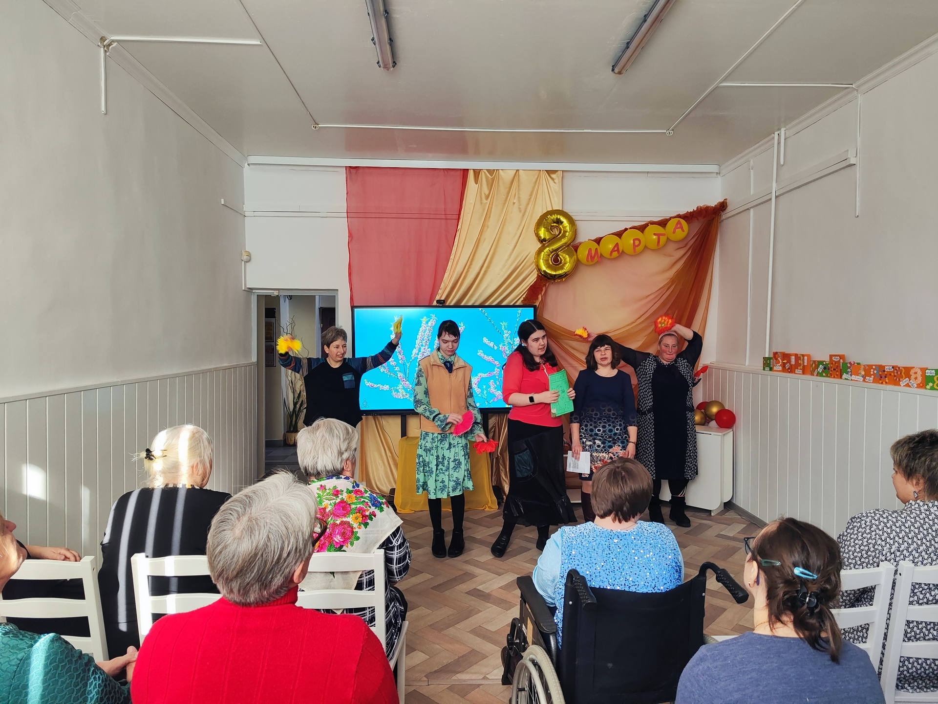 В центре внимания праздника были мамы, бабушки и девушки, посещающие отделение. Программа была наполнена душевными поздравлениями, песнями, танцами, а также увлекательными конкурсами.