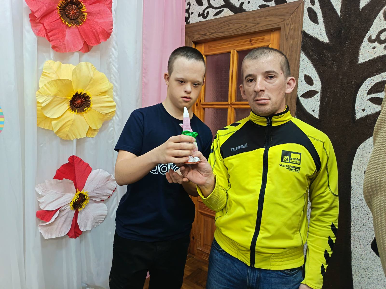 Во время посещения игровой программы «Пасхальный Светлый день» подопечные отделения социальной реабилитации, абилитации инвалидов Ивановского территориального центра подарили сувениры ручной работы - Пасхальных зайцев, изготовленных в мастерской по адаптации к трудовой деятельности, воспитанникам Ивановского районного центра коррекционно-развивающего обучения и реабилитации.