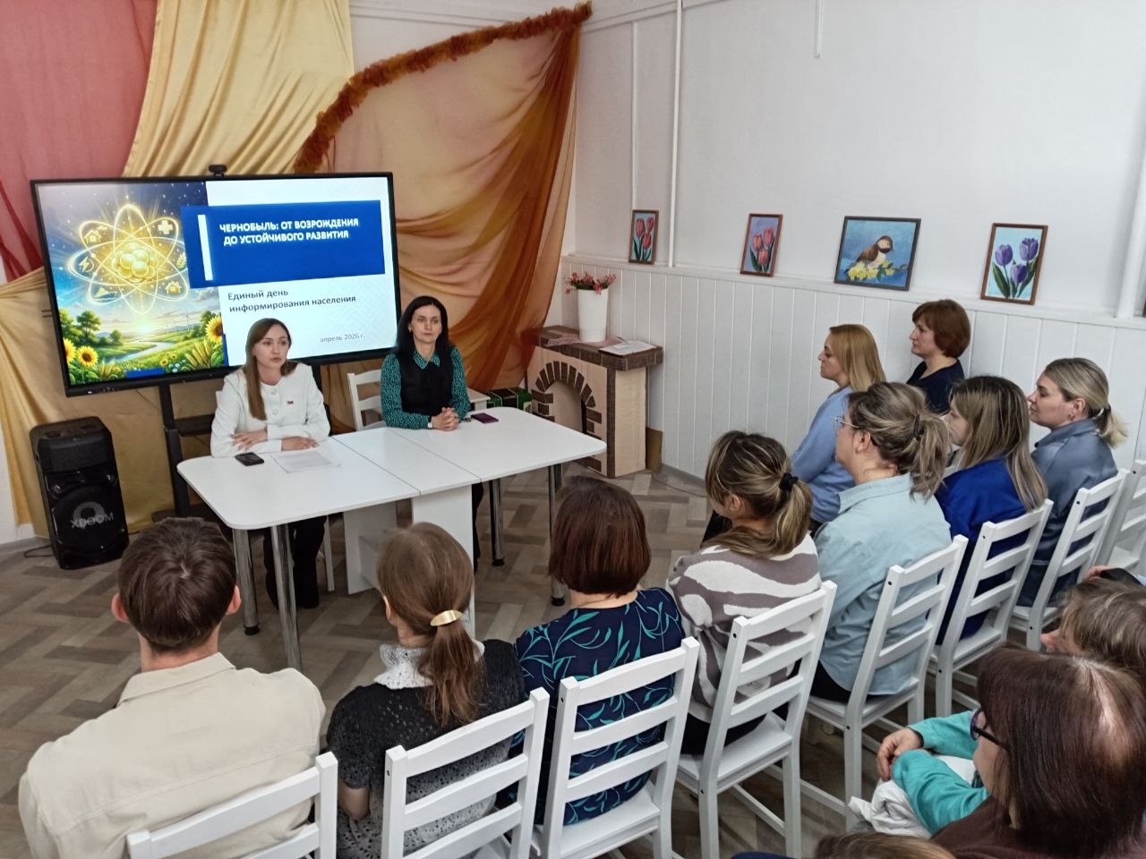 В Ивановском территориальном центре социального обслуживания населения прошел единый день информирования по теме: «Чернобыль: от возрождения до устойчивого развития». Данную тему осветила Ширшова Елизавета Сергеевна, председатель Молодежного парламента третьего созыва при Ивановском районном Совете депутатов, член Молодежного Совета Республики при Национальном Собрании Республики Беларусь.
